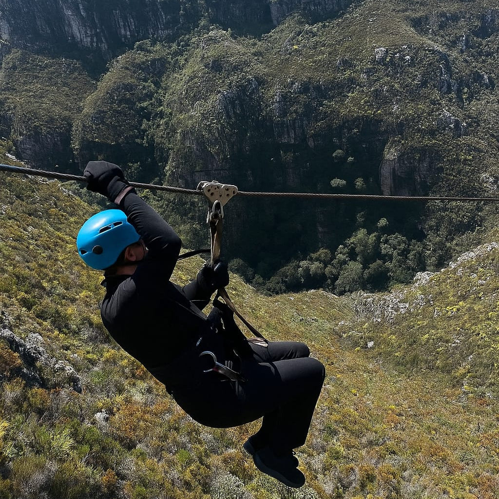 Just over an hour from Cape Town, the Cape Canopy Tour in the Elgin Valley offers an unforgettable journey through a World Heritage site, combining a thrilling 4x4 mountain drive with eleven exhilarating zipline slides high above rugged cliffs, fynbos and waterfalls